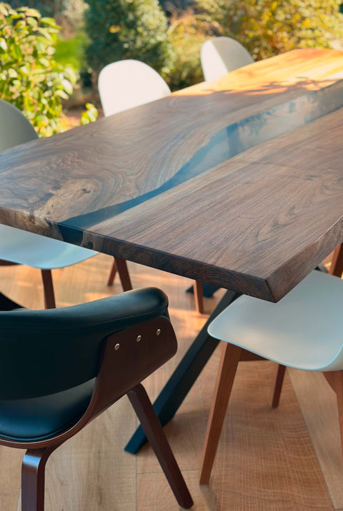 Smoke gray epoxy resin table in walnut wood, custom size Romano