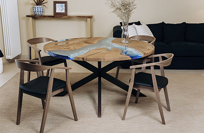 Unsere Tische aus Massivholz und Epoxidharz begleiten Sie durch unvergessliche Familienmomente – Tag für Tag. Gefertigt aus edlen Materialien, bringen sie Wärme und Charakter in Ihr Zuhause.
