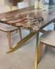 Epoxidharz Tisch Alma aus Nussbaum mit klarem Harz mit Weiß und Gold