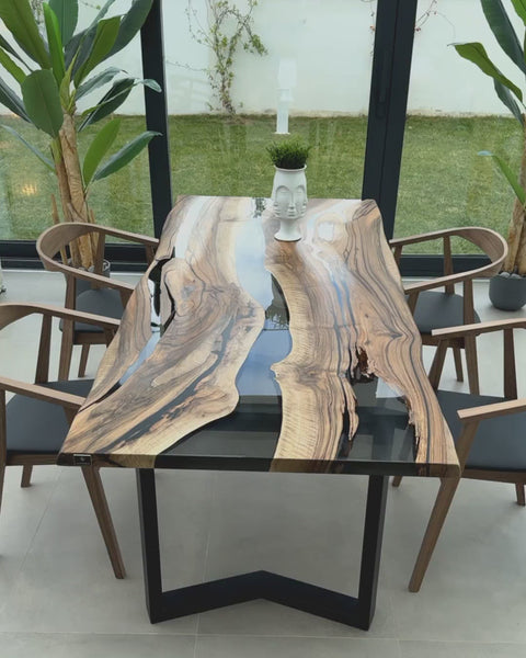 Epoxidharz Tisch Ginevra aus Nussbaum und rauchigem transparentem Harz