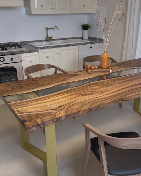 Epoxy Tisch Celestina aus Nussbaum und glasklarem Harz, handgefertigt