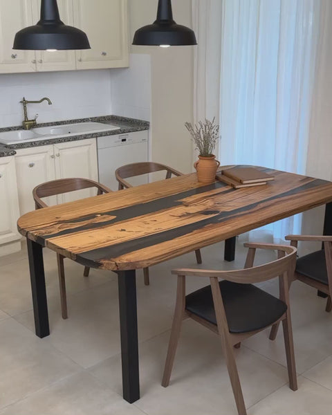 Esstisch Silhouette aus Eiche massiv mit rauchig mattem Epoxidharz