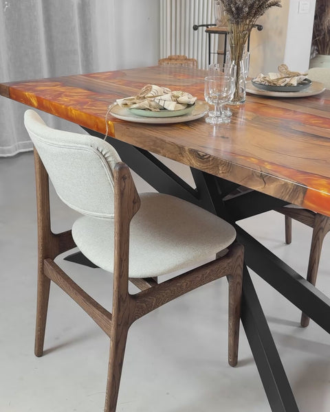 Esszimmertisch Celine aus Nussbaum mit orangefarbenem Epoxidharz