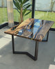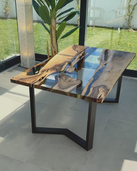 Holztisch Kenia aus Nussbaum massiv und transparentem Epoxidharz