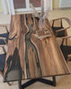 Holztisch Nairobi aus Nussbaum mit grauem transparentem Epoxidharz