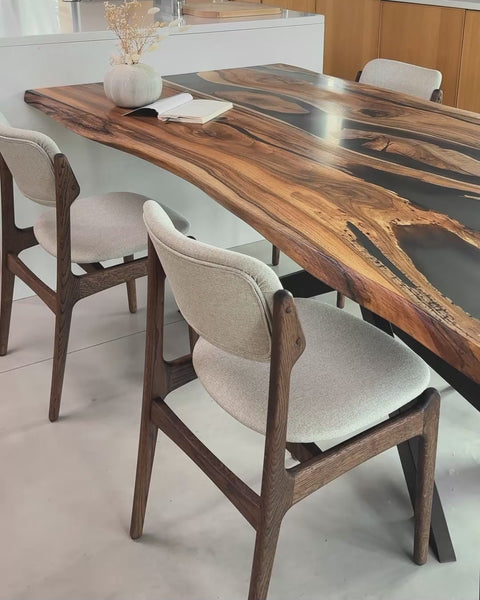 Masivholz Esstisch Aria aus Nussbaum mit rauchgrauem Epoxidharz