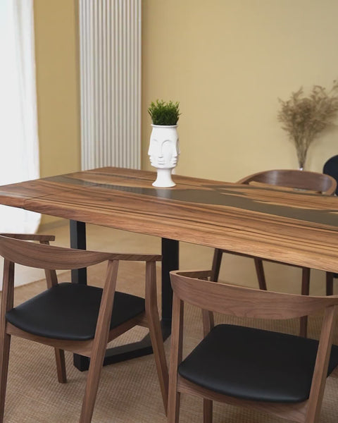 Massivholztisch Etna aus Nussbaum mit rauchgrauem Epoxidharz