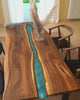 Blue epoxy resin dining table in walnut wood, custom size Capri