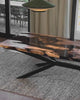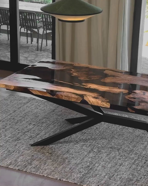 Epoxy resin table in smoke gray resin and olive wood, custom size Enigma