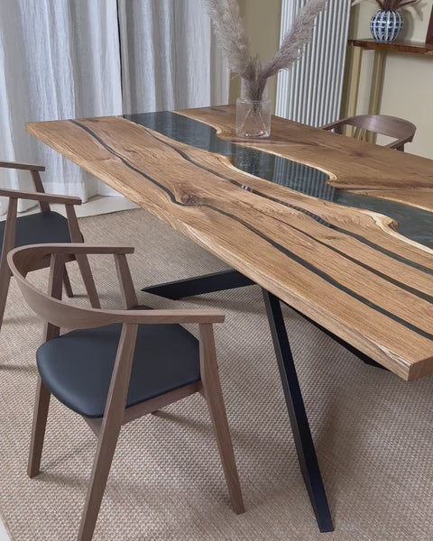 Oak wood table with blue and gold epoxy, custom size Mirabella